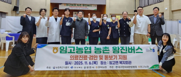 영천시는 6일 임고농협에서 금호·북안·화산에 이어 올해 네 번째로 ‘농촌왕진버스’를 성공적으로 운영했다.농업인 300여 명이 모인 가운데 열린 이날 농촌왕진버스는 ▲한방진료 ▲운동처방 ▲검안 ▲치매상담 등 4개 분야에 한의사 5명을 포함한 전문 의료진 40여 명이 투입돼, 지역 농업인들에게 맞춤형 의료서비스를 제공했다.특히, 이번 행사에는 연세대스포츠재활연구소가 함께해 농업인들의 어깨·무릎 등 근골격계 질환에 대해 1:1 맞춤형 운동처방과 생활 속 재활 방법을 안내하며 큰 호응을 얻었다.대구한의대 한방병원의 한방진료와 검안·치매 조기 검진 상담도 진행돼, 현장은 의료 상담을 받으려는 농업인들로 붐볐다.최기문 영천시장은 “농업인들의 건강은 곧 지역 농업의 경쟁력”이라며, “앞으로도 농촌 지역의 의료 공백을 줄이기 위해 건강 돌봄 체계를 구축해 나가겠다”고 말했다.영천시는 올해 농림축산식품부의 ‘농촌왕진버스’ 공모사업에 4개소가 선정돼, 금호·북안·화산·임고농협과 협력해 지역 농업인 1,200여 명에게 찾아가는 의료서비스를 제공했다.이날 행사에 참여한 최용수 임고농협조합장은 “의료 사각지대에 계신 어르신을 직접 찾아가 건강을 돌보는 농촌왕진버스는 단순한 의료서비스가 아니라, 현장을 찾아가 농업인 삶의 질을 높이는 중요한 사업”이라며, “앞으로도 농업인이 건강하고 행복한 영천을 만들기 위해 지속적으로 지원을 확대하겠다”고 말했다.