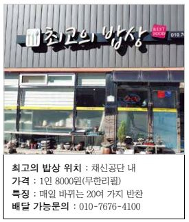 지역 소규모 공단에는 자체 구내식당을 운영할 만한 대형 공장이 드물다. 이런 환경에서 20년간 근로자들의 ‘제2의 식탁’이 되어온 곳이 있다. 채신공단 내 한식뷔페 ‘최고의 밥상’(대표 허선미)이다.이곳의 최대 강점은 매일 바뀌는 20여 가지 반찬이다. 김치류를 제외한 대부분 메뉴가 날마다 새롭게 선보인다. 제육볶음, 수육, 돈까스, 닭볶음탕은 물론 소불고기, 보쌈, 삼계탕까지 가정에서 쉽게 해먹기 어려운 메뉴들이 식탁에 오른다.허 대표가 직접 조리하는 음식들은 집밥의 정성을 담고 있다. 비빔밥이 나오는 날이면 손님 곁에서 달걀 후라이를 추가로 얹어주는 소소한 배려도 있다. 국 메뉴는 미역국, 소고기국, 시레기국 등 시골 밥상처럼 소박하다. 국수, 짜장면, 카레 등 별미 메뉴도 때에 따라 만날 수 있다. 젊은세대를 위해 컵라면과 어묵도 제공하고 있다. 여기에 후식으로 식혜나 수정과에다 때로는 과일을 썰어 놓기도 한다.식당 내부는 화려한 인테리어 대신 실용성에 초점을 맞췄다. 70~80명을 동시 수용할 수 있는 테이블 좌석이 전부다. 하지만 깔끔하게 정렬된 반찬과 풍미 깊은 맛이 단골들의 발길을 붙든다. 보쌈이나 제육 같은 인기 메뉴는 막 나왔을 때가 가장 맛있어 일찍 방문하는 것이 좋다.허 대표는 반찬 보충과 국 배식을 직접 챙기며 분주하게 움직인다. 현장을 찾기 어려운 손님들을 위한 배달 서비스도 운영 중이다.1인 8000원이라는 가격은 물가 상승기에도 변함없다. “한 번도 안 가본 사람은 있어도 한 번만 간 사람은 없다”는 말이 나오는 이유다.개업 20주년을 맞아 허 대표는 12월 2일과 3일 이틀간 고객 감사 이벤트를 연다. 방문 고객에게 떡과 음료, 과일을 제공할 예정이다.