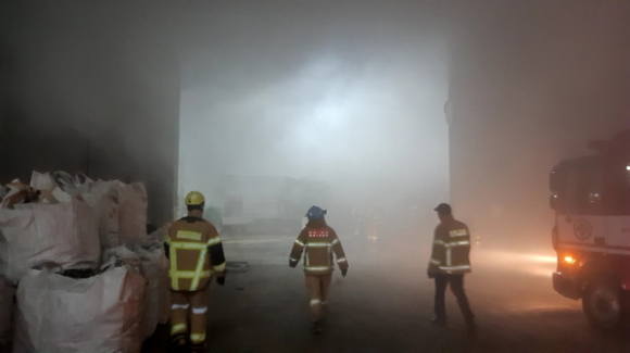 영천시 도남동의 자원순환시설에서 대형 화재가 발생해 소방당국이 진화에 총력을 기울이고 있다.17일 소방당국에 따르면 이날 오전 4시 47분께 도남동 소재 ㅇㅇ환경 자원순환시설 야적장에 적치돼 있던 합성수지 폐기물 더미에서 불이 났다는 신고가 접수됐다.소방의 현장 지휘는 오전 5시 2분께 도착과 동시 시작됐으며, 현재까지 인명피해는 없는 것으로 확인됐다.불은 야적장에 쌓여 있던 합성수지 폐기물에서 시작된 것으로 파악된다. 해당 시설에는 약 300톤가량의 합성수지 폐기물이 적재돼 있던 것으로 알려졌고, 합성수지는 특성상 가연성이 높고 내부 깊숙이 열이 축적되는 경우가 많아 완전 진화까지는 상당한 시간이 소요될 것으로 보인다.소방당국은 인명 검색을 마친 뒤 본격적인 진화 작업에 돌입했으며, 업체 측도 자체 보유한 굴착기 3대를 동원해 폐기물 더미를 뒤집는 등 연소 확대 차단에 협조하고 있다. 굴착기를 이용해 더미를 분리·살수하는 방식으로 잔불을 제거하고 있으나, 적재량이 많은 데다 재발화 가능성도 있어 장시간 진화가 불가피하다는 설명이다.현장 관계자는 “합성수지류는 표면 화염이 잡힌 뒤에도 내부에서 장시간 연소가 이어질 수 있다”며 “연기 확산과 추가 발화 여부를 예의주시하고 있다”고 말했다.소방당국은 화재가 완전히 진압되는 대로 정확한 발화 원인과 재산 피해 규모를 조사할 방침이다.