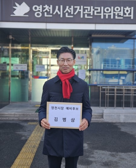김병삼 전 영천시 부시장이 18일 영천시선거관리위원회에 예비후보로 등록하며 영천시장 선거전에 본격 뛰어들었다.김 예비후보는 이날 등록 직후 “멈춰 선 영천, 다시 움직이겠다”며 출마 의지를 분명히 했다. 그는 “영천은 지금 중요한 갈림길에 서 있다”며 “행정을 경험한 사람으로서 지역의 현실을 정확히 진단하고, 실행 가능한 대안을 제시하겠다”고 밝혔다.김 예비후보는 영천시 부시장 재직 당시 주요 현안 조정과 정책 집행을 총괄했던 경험을 강조했다. 그는 “지역 발전은 구호가 아니라 계획과 절차, 그리고 책임에서 시작된다”며 행정 전문성과 실행력을 강점으로 내세웠다.또한 “지역경제의 활력이 예전 같지 않고, 청년 인구 유출과 산업 구조 변화에 대한 대응이 시급하다”며 “행정 경험을 바탕으로 시민 삶의 현장을 다시 살리는 데 힘을 보태고자 출마를 결심했다”고 설명했다.김 예비후보는 “지금 영천에 필요한 것은 갈등이 아니라 분명한 방향 설정”이라며 “속도보다 중요한 것은 정확한 실행”이라고 거듭 강조했다.앞으로 정책 브리핑을 통해 구체적인 실행 방안을 순차적으로 공개하겠다고 밝힌 그는 ▲지역경제 및 산업 경쟁력 강화 ▲농업 구조 혁신과 유통 체계 개선 ▲청년 정책 및 생활 인프라 확충 등을 주요 과제로 제시했다.지역 정가에서는 행정 경험을 앞세운 김 예비후보의 출마가 향후 선거 구도에 어떤 변화를 가져올지 주목하고 있다.