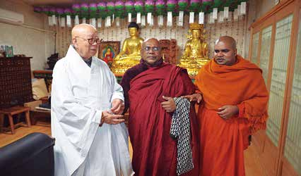 대한불교조계종 충효사 회주 원감 해공 스님은 스리랑카 스님들을 한국으로 초청해 대학 진학과 학업을 지원하는 등 양국 불교계 교류와 인재 양성에 힘을 보태고 있다.스리랑카의 아리안 야너 스님은 지난 3일 충효사를 찾아 해공 스님을 예방하고 양국 불교계의 우호와 협력 방안에 대해 뜻깊은 대화를 나눴다.이날 자리에는 영천 한국스리랑카불교사원 주지 완사 스님과 스리랑카 이주노동자 루완 씨, 김미숙 평온선원 사무국장 등이 함께해 두 나라 불교계의 인연과 화합을 지켜봤다.이번 만남은 한국스리랑카불교사원 주지 완사 스님의 초청으로 방한한 야너 스님이 국내에 체류 중인 스리랑카 이주노동자들을 격려하고, 스리랑카 정부 대표단의 한국 방문을 지원하는 일정 속에서 마련됐다.특히 이날 야너 스님은 해공 스님이 스리랑카 학인 스님들을 한국으로 초청해 대학 진학과 학업을 지원하겠다고 약속한 데 대해 깊은 감사의 뜻을 전했다.야너 스님은 “스리랑카 불교 인재 양성에 큰 관심을 가져주신 해공 스님께 진심으로 감사드린다”며 “한국과 스리랑카 불교가 더욱 가까워지길 바란다”고 말하며 해공 스님을 스리랑카로 공식 초청했다.이에 해공 스님은 “한국과 스리랑카 불교는 오랜 세월 이어온 형제 같은 인연”이라며 “스리랑카의 어린 학인 스님들이 한국에서 마음껏 공부하며 훌륭한 수행자로 성장할 수 있도록 대학 졸업 때까지 모든 지원을 아끼지 않겠다”고 화답했다.해공 스님은 또 “야너 스님의 이번 방문이 두 나라의 우정을 더욱 깊게 하고 불교 문화 교류의 새로운 인연을 여는 계기가 되길 바란다”고 덧붙였다.일정을 마치고 귀국하는 야너 스님에게 해공 스님은 여비 200만 원을 전달하며 따뜻한 정을 나눴다. 작은 나눔 속에 담긴 큰 마음은 양국 불교계의 깊은 인연을 다시 한 번 확인하게 했다.이날 충효사에서 이어진 만남은 단순한 방문을 넘어, 국경을 넘어선 불심과 인연이 어떻게 이어질 수 있는지를 보여준 뜻깊은 장면으로 남았다.최병식 기자