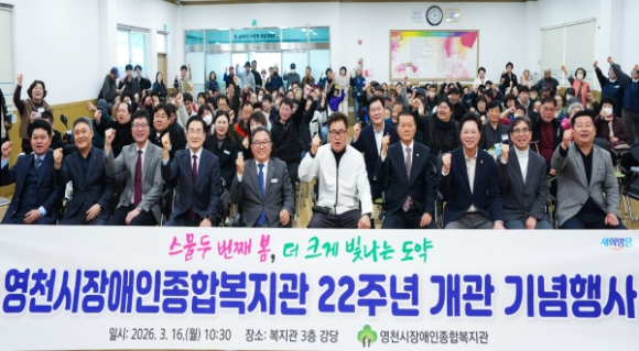 영천시장애인종합복지관은 16일 ‘스물두 번째 봄, 더 크게 빛나는 도약’을 주제로 개관 22주년 기념행사를 개최했다.기념식은 기념영상 상영, 공로자 및 장기근속 직원 표창, 기념떡 커팅식이 이어지며 지난 22년간 복지관의 발자취를 돌아보고 앞으로의 도약을 다짐하는 시간을 가졌다.이어 2부에서는 이용고객과 함께하는 윷놀이 한마당을 진행해 참여자들이 서로 어울리며 화합하는 시간을 가졌으며, 직원들이 정성껏 포장한 떡을 지자체와 유관기관에 전달하는 사랑의 떡 나눔 활동을 통해 지역사회에 감사의 마음을 전했다.권순종 관장은 “복지관이 22년 동안 지역 장애인들과 함께 성장해 올 수 있었던 것은 지역사회의 관심과 응원 덕분”이라며, “앞으로도 장애인들의 더 나은 삶을 위해 지역사회와 함께하는 복지관이 되겠다”고 감사의 마음을 전했다.한편, 영천시장애인종합복지관은 2004년 개관 이후 직업재활, 문화·여가·체육활동, 재가복지, 권익옹호, 상담 등 다양한 서비스를 제공하며 지역 장애인의 삶의 질 향상을 위해 힘써왔다.보건복지부 주관 사회복지시설 평가에서 2011년부터 5회 연속 장애인복지관 부문 최우수(A) 기관으로 선정되는 등 지역사회 장애인 복지 향상에 기여하고 있다.